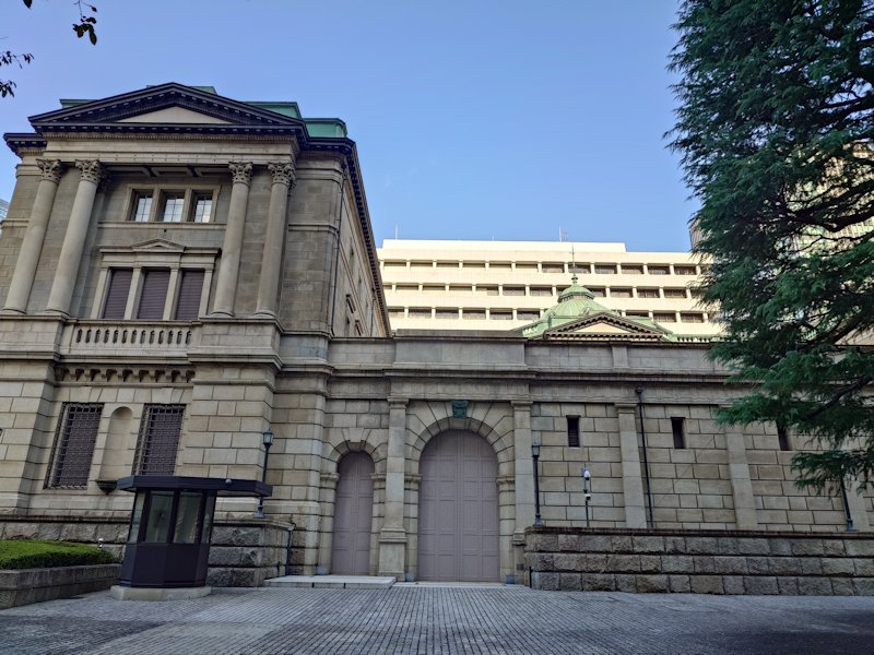常盤橋から見る日本銀行本店(左)、日本橋室町三井タワー(中央)、日本橋三井タワー(右)。